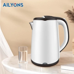 AILYONS FK-0308 boils water 85% more efficiently than a stove-top kettle. Concealed stainless steel heating element; automatic shut-off with boil-dry protection. Durable insulated plastic body. Non-slip 360-degrees rotary power base for cordless easy filling, pouring, and serving with a long chord stored neatly in the base. This portable kettle boils water, fast, saving you precious time. It automatically shuts off, once the water reaches its boiling point. The ergonomically designed spout allows you to pour out contents with ease without creating drips.