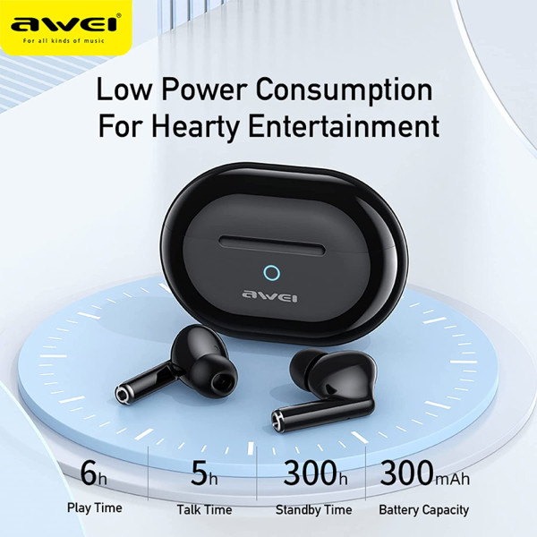 Advanced and stable Bluetooth 5.3 technology. AWEI T61 supports HSP, HFP, A2DP and AVRCP, greatly improving transmission speed and providing you with low latency listening experience. It also makes in-ear wireless Bluetooth more consistent with electronic devices, providing you with an uninterrupted call and music experience, as well as ENC smart noise cancellation.